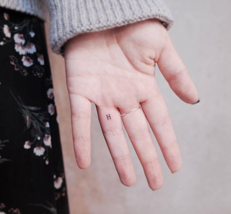 藏在手指间的小惊喜纹身图片_成品手部手指文字字符几何图腾清新纹身图案