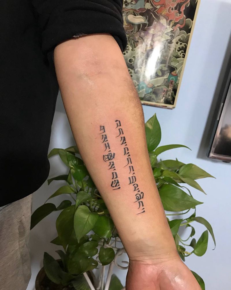 当前位置: 首页 >山东省淄博市纹身店-金艺堂纹身纹身图案>梵文&哑铃纹身图片_成品欧美图腾字符手臂背部原创纹身图案