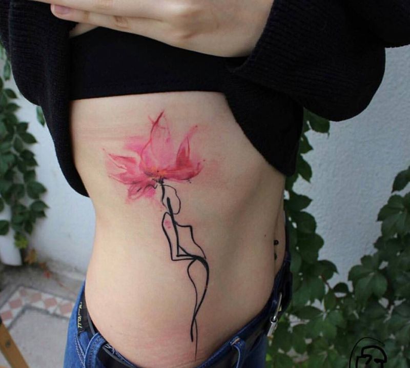 • 时尚性感的腹部莲花纹身图案