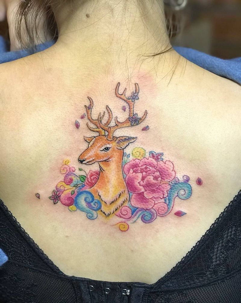 当前位置: 首页 >山东省淄博市纹身店-金艺堂纹身纹身图案>鹿纹身图片_背部水彩新传统纹身图案
