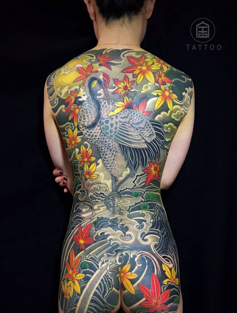 当前位置: 首页 >山东省淄博市纹身店-金艺堂纹身纹身图案>鹤纹身图片_背部臀部新传统老传统仙鹤满背纹身图案