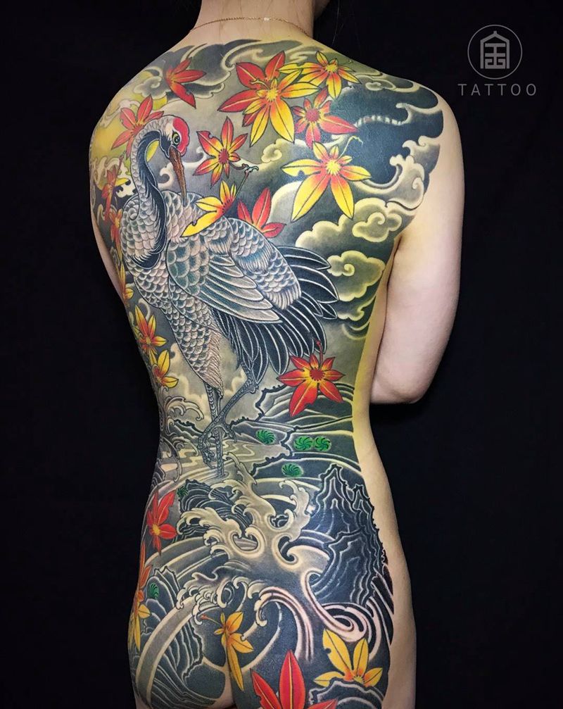 当前位置: 首页 >山东省淄博市纹身店-金艺堂纹身纹身图案>鹤纹身图片_背部臀部新传统老传统仙鹤满背纹身图案
