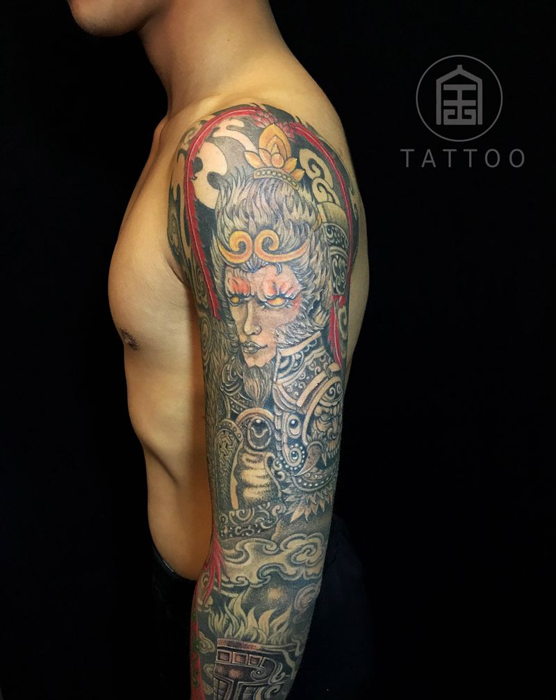 大圣娶亲纹身图片_手臂新传统齐天大圣花臂漂亮的纹身图案