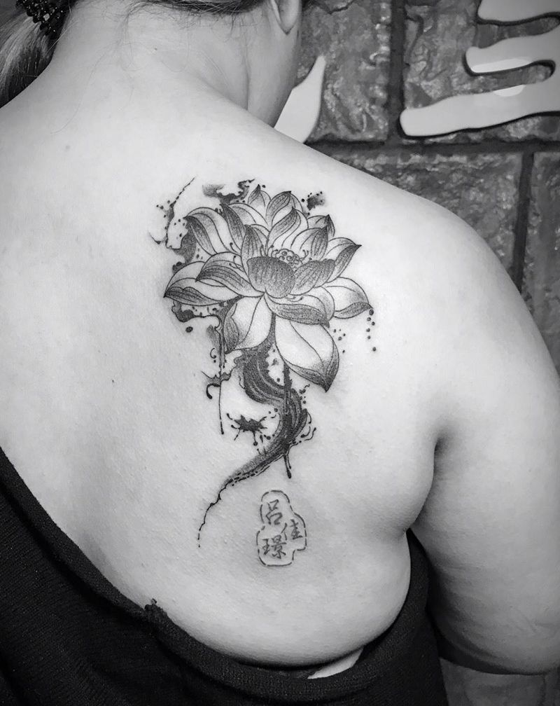 当前位置: 首页 >山东省淄博市纹身店-金艺堂纹身纹身图案>莲花纹身图片_肩部水彩水墨纹身图案