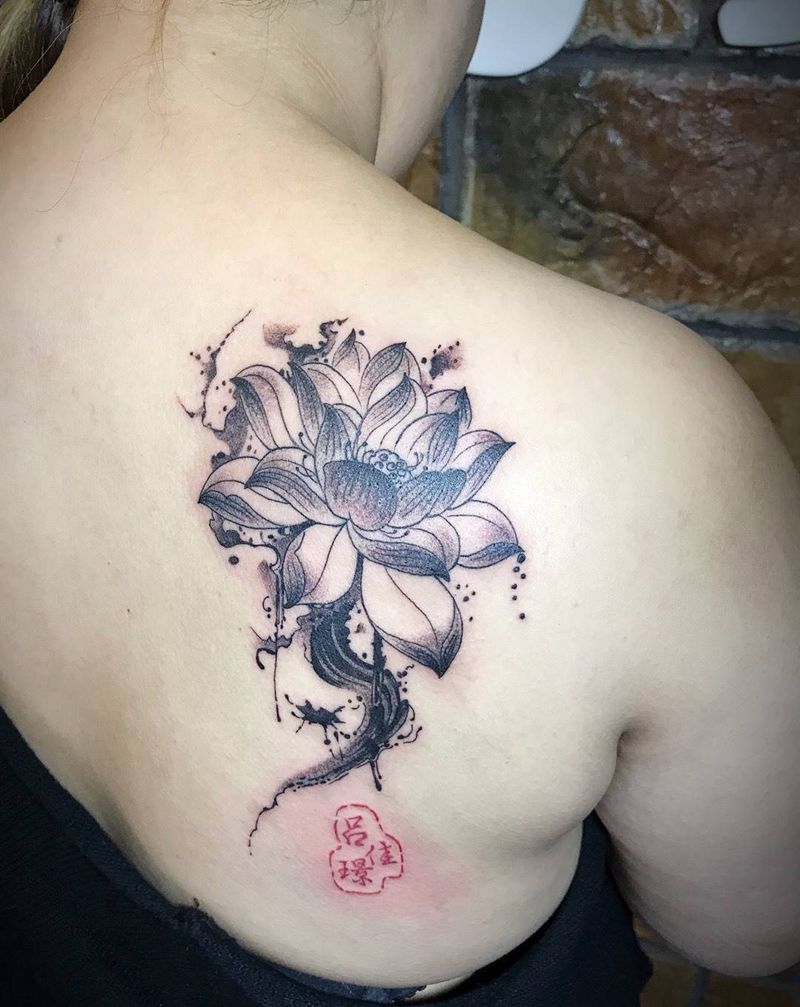 当前位置: 首页 >山东省淄博市纹身店-金艺堂纹身纹身图案>莲花纹身图片_肩部水彩水墨纹身图案