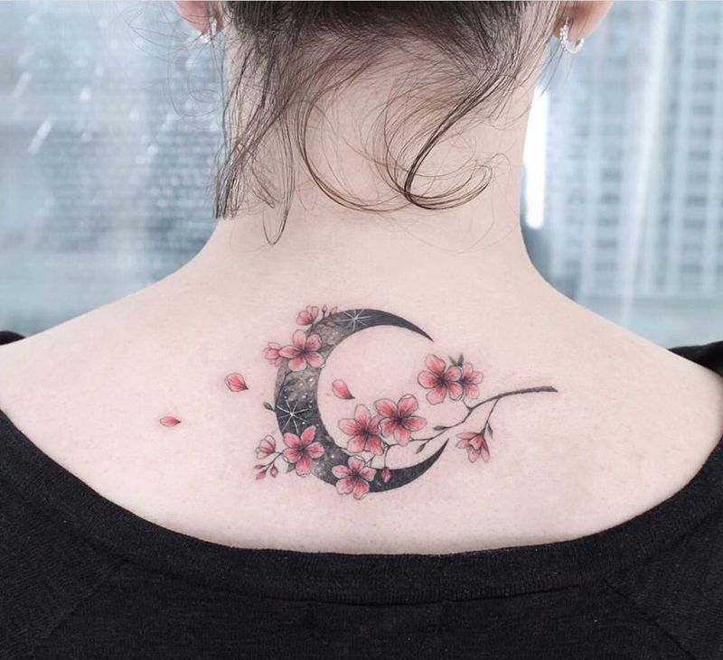 月亮花儿纹身纹身图片_手臂腰部图腾新传统月亮小清新纹身图案