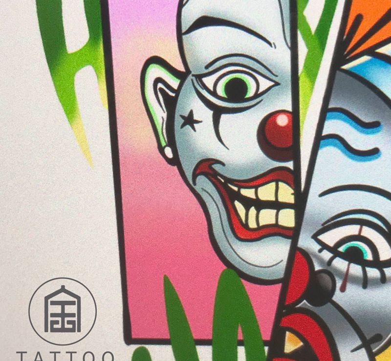 小丑纹身图片_手臂背部New School新传统小丑纹身图案