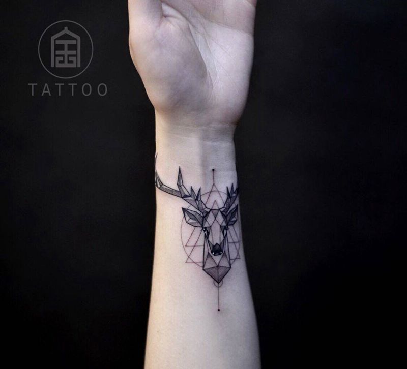 鹿纹身图片_手臂手部图腾几何鹿纹身图案