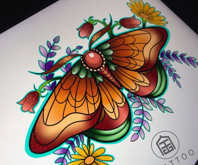 彩色扑棱蛾子[偷笑]纹身图片_胸部New School手稿蝴蝶纹身图案