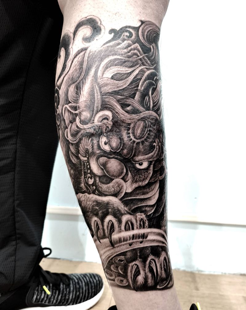 貔貅遮盖疤痕纹身图片_腿部新传统纹身图案