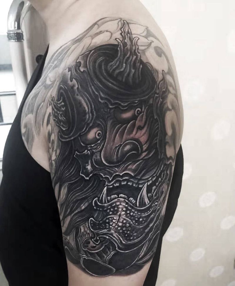 黑灰满背纹身图案