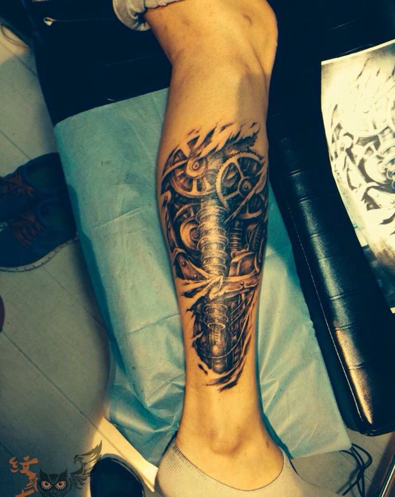 • T网红王老大花腿龙纹身图片_腿部新传统纹身图案
