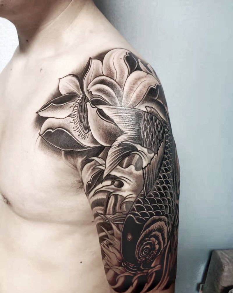 • 纹身吧推荐的披肩图腾半胛纹身图案作品展示