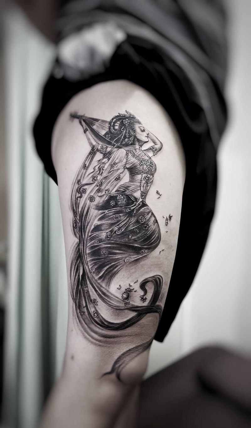 “飞天”纹身图片_腿部纹身图案