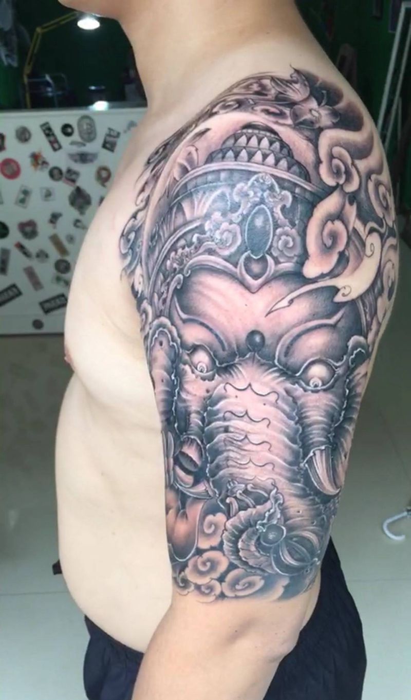 当前位置: 首页 >山东省淄博市纹身店-谦舍刺青纹身图案>象神纹身图片