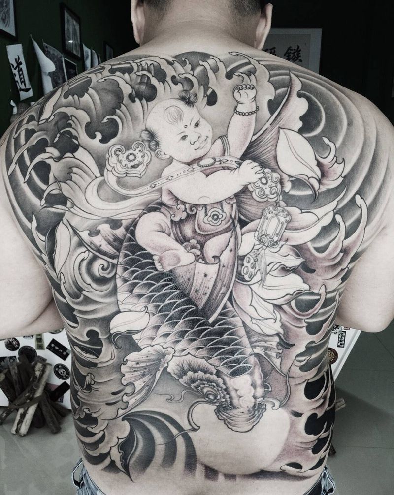 当前位置: 首页 >山东省淄博市纹身店-谦舍刺青纹身图案>福娃抱鱼纹身图片