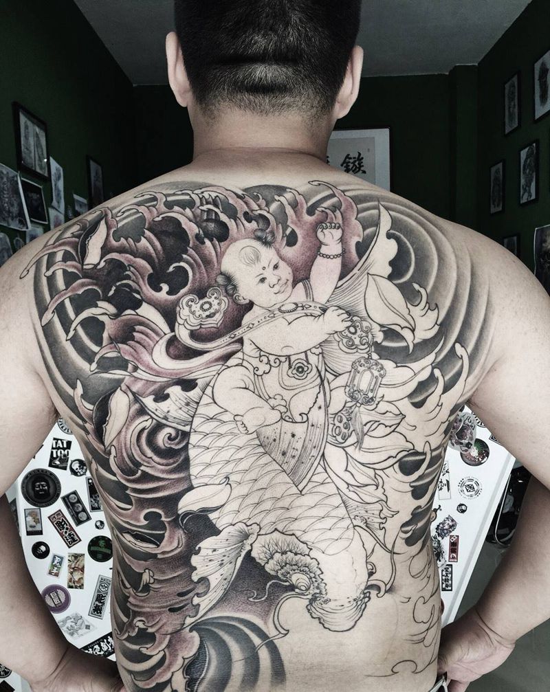 当前位置: 首页 >山东省淄博市纹身店-谦舍刺青纹身图案>福娃抱鱼纹身图片