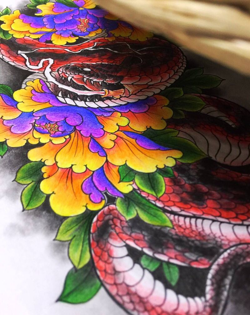 当前位置: 首页 >山东省淄博市纹身店-谦舍刺青纹身图案>蛇盘牡丹纹身图片