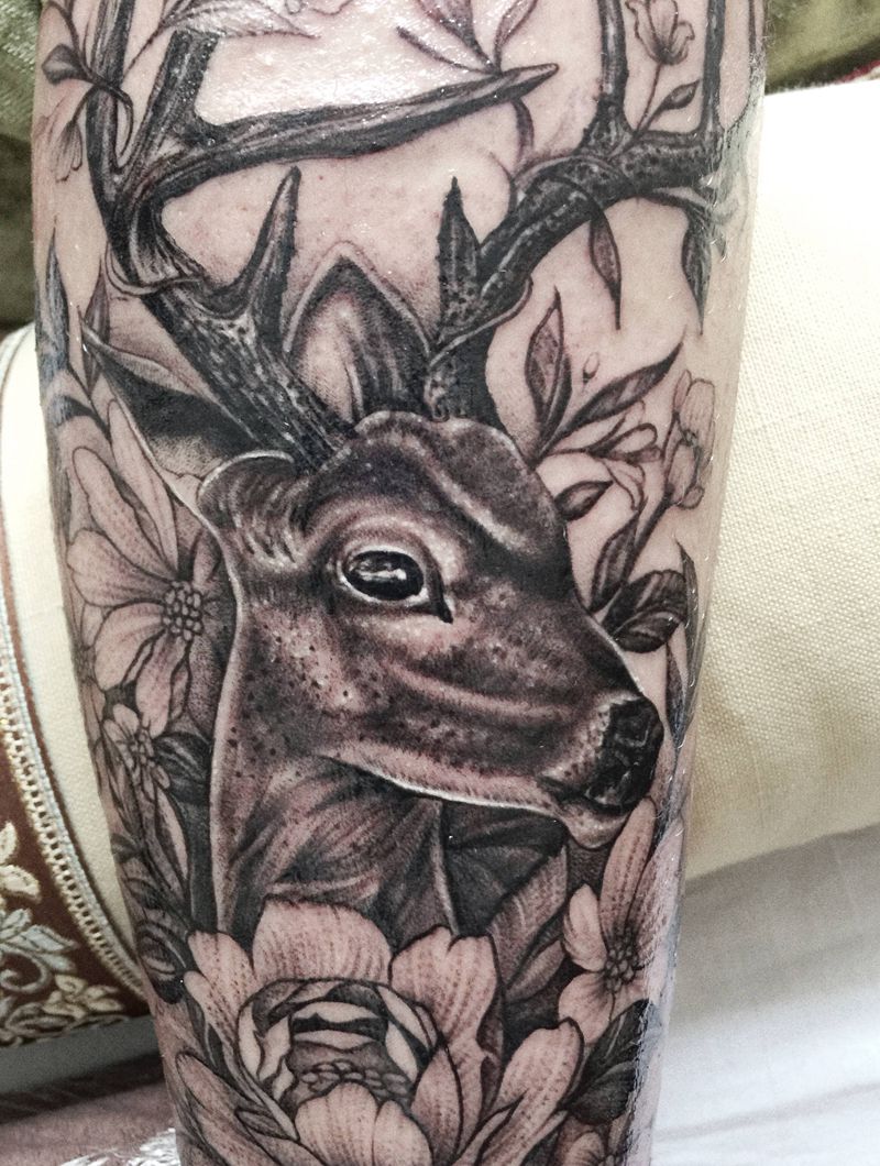 当前位置: 首页 >山东省淄博市纹身店-谦舍刺青纹身图案>没有野格,这里有鹿纹身图片_腿部点刺纹身图案