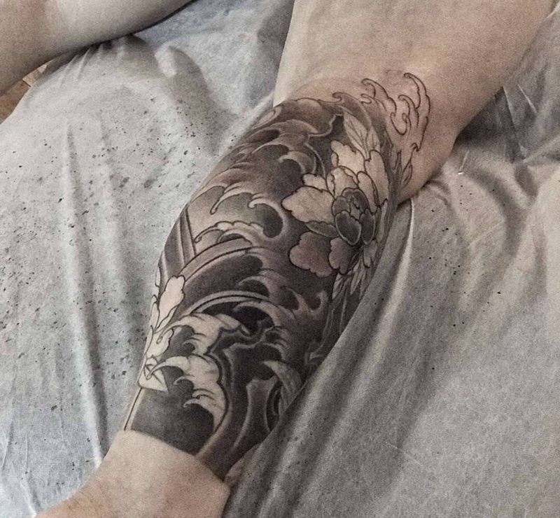 • T网红王老大花腿龙纹身图片_腿部新传统纹身图案