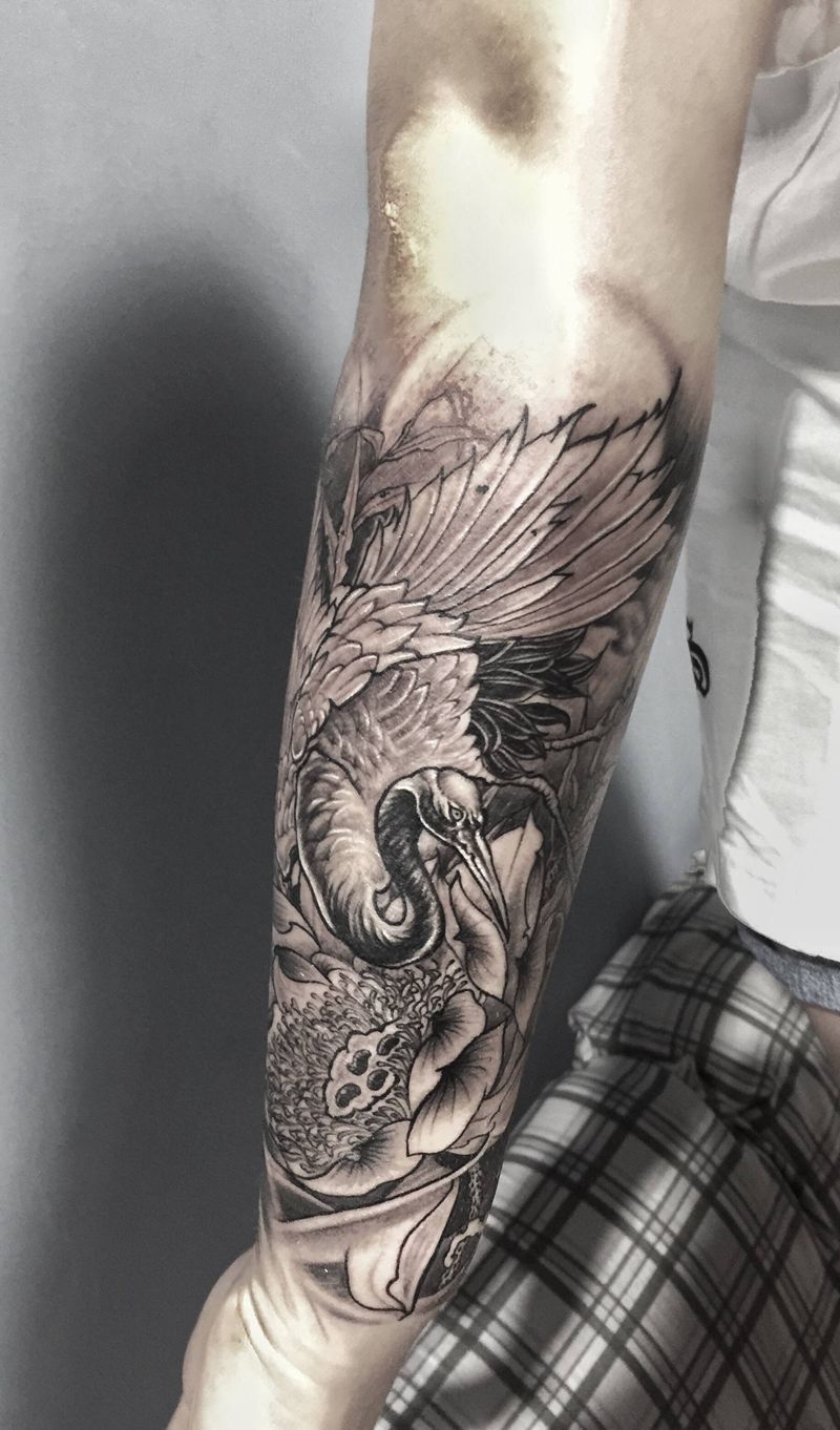 当前位置: 首页 >山东省淄博市纹身店-谦舍刺青纹身图案>【仙鹤】纹身图片_手臂新传统纹身图案