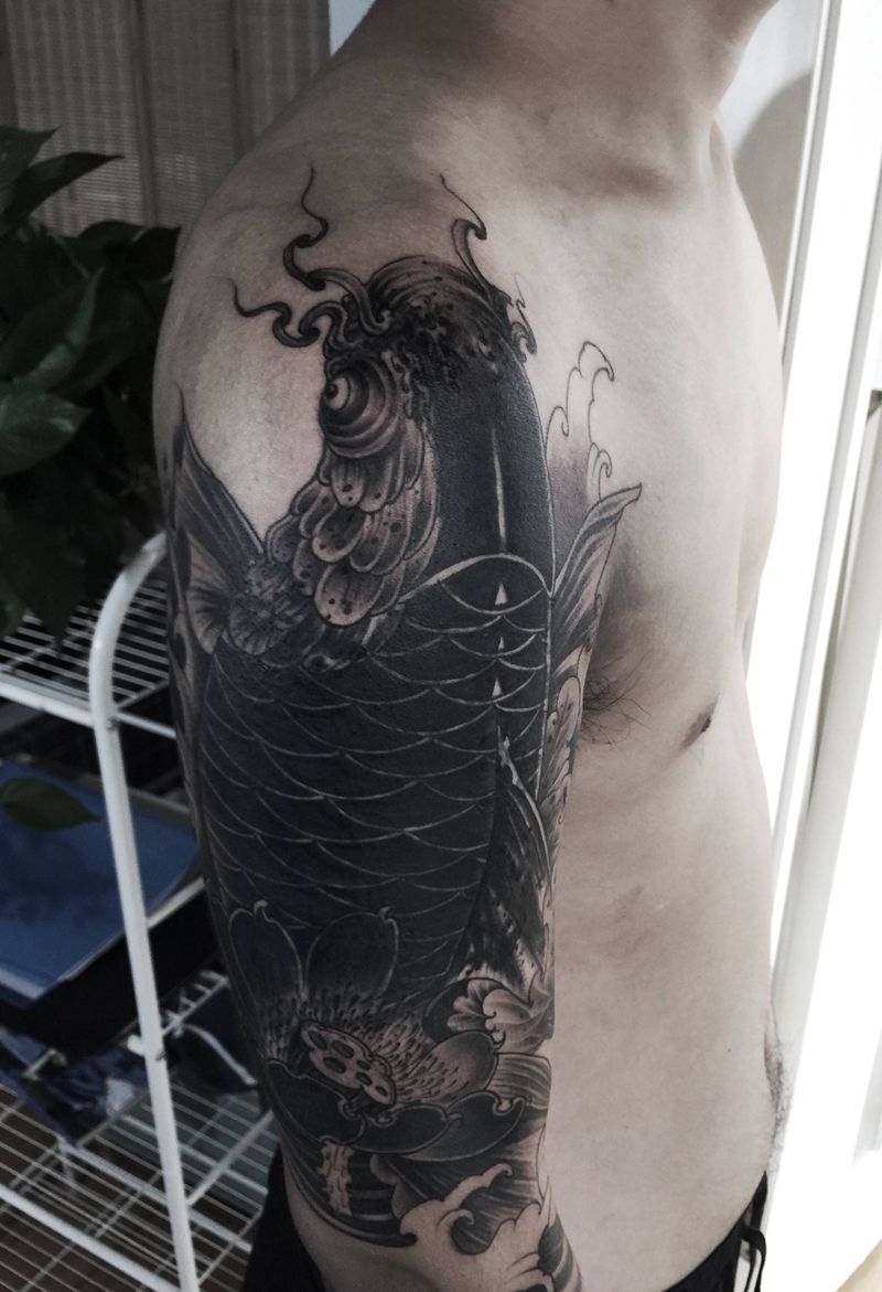 当前位置: 首页 >山东省淄博市纹身店-谦舍刺青纹身图案>大鱼盖小鱼纹身图片_手臂纹身图案