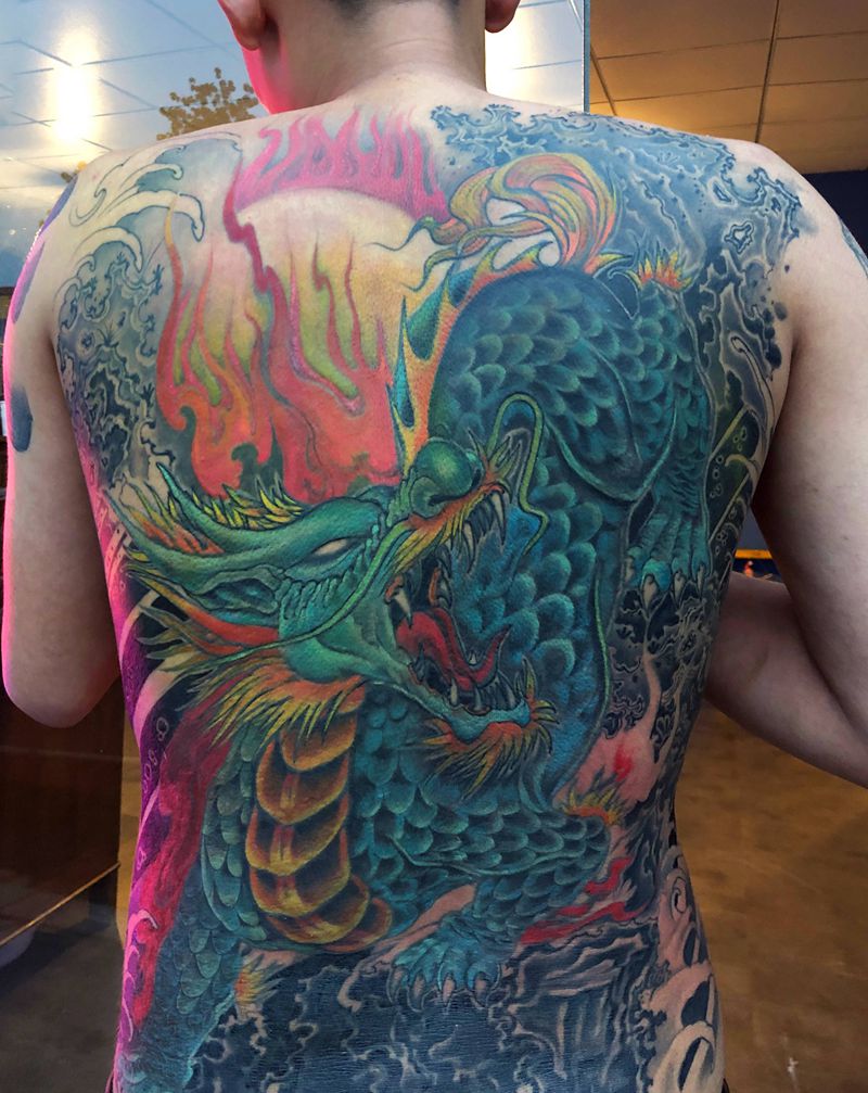• T云龙九郎纹身图片_背部老传统云龙九郎纹身图案