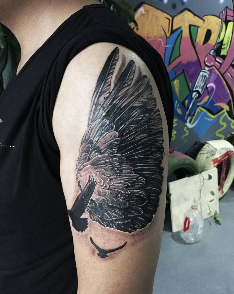 • 纹身吧推荐的披肩图腾半胛纹身图案作品展示