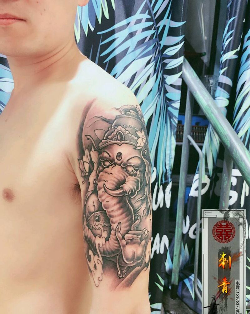 当前位置: 首页 >山东省枣庄市纹身店-囍刺青纹身图案>象神纹身图片_手臂肩部新传统老传统纹身图案