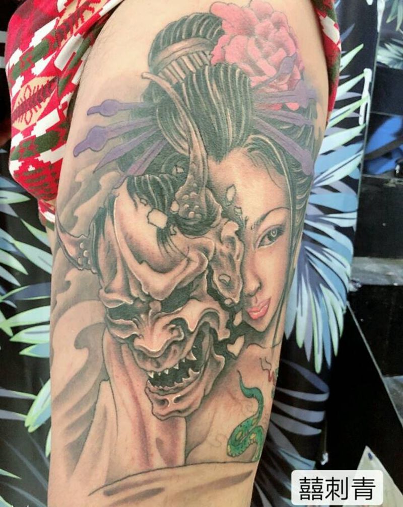 艺妓班诺纹身图片_腿部新传统艺妓般诺纹身图案
