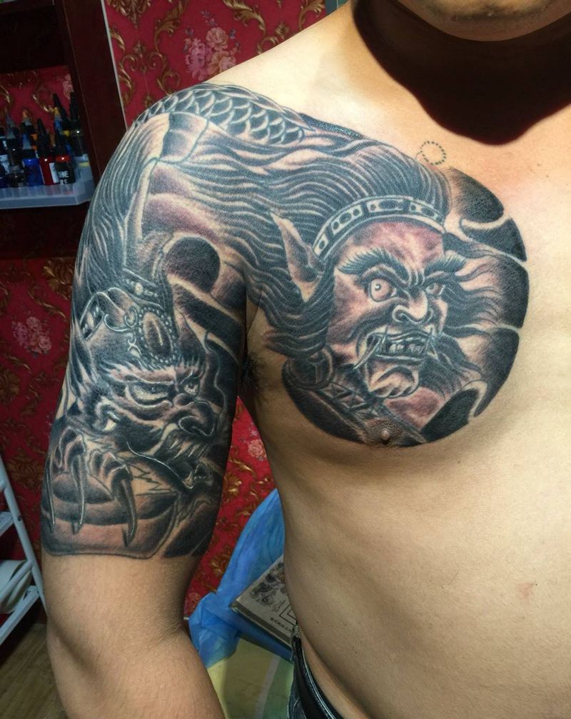 • H传统钟馗纹身 钟馗过肩纹身图案
