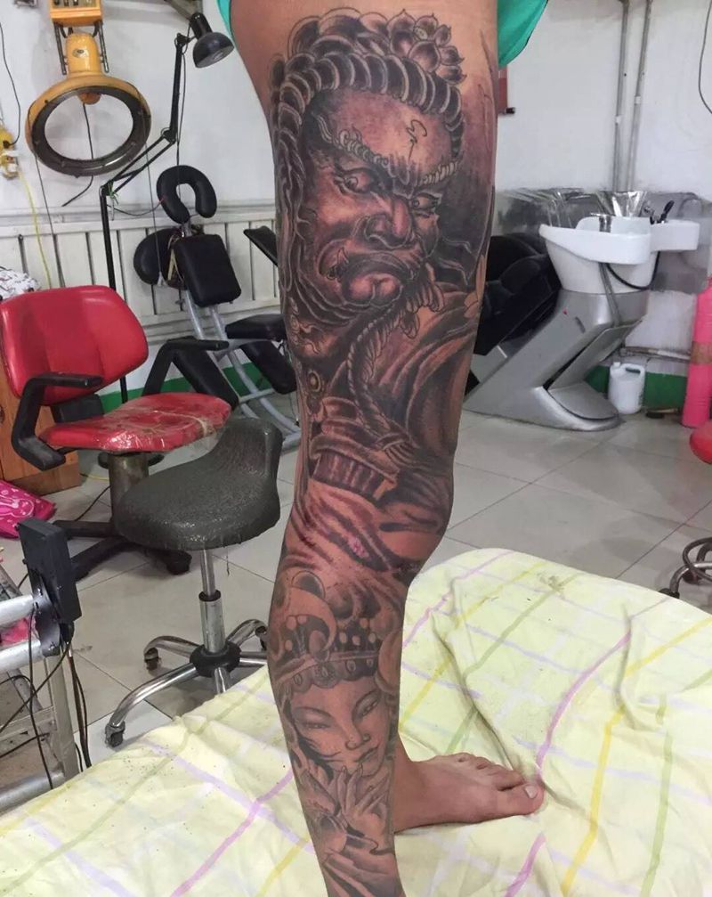 • T网红王老大花腿龙纹身图片_腿部新传统纹身图案