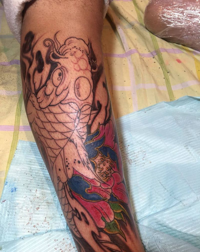 • T网红王老大花腿龙纹身图片_腿部新传统纹身图案