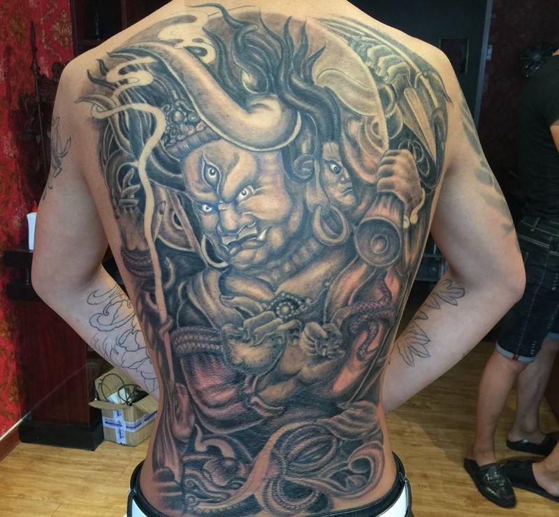 黑灰满背纹身图案