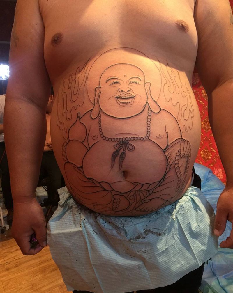 当前位置: 首页 >山东省枣庄市纹身店-滕州刺客纹身纹身图案>笑弥勒纹身图片