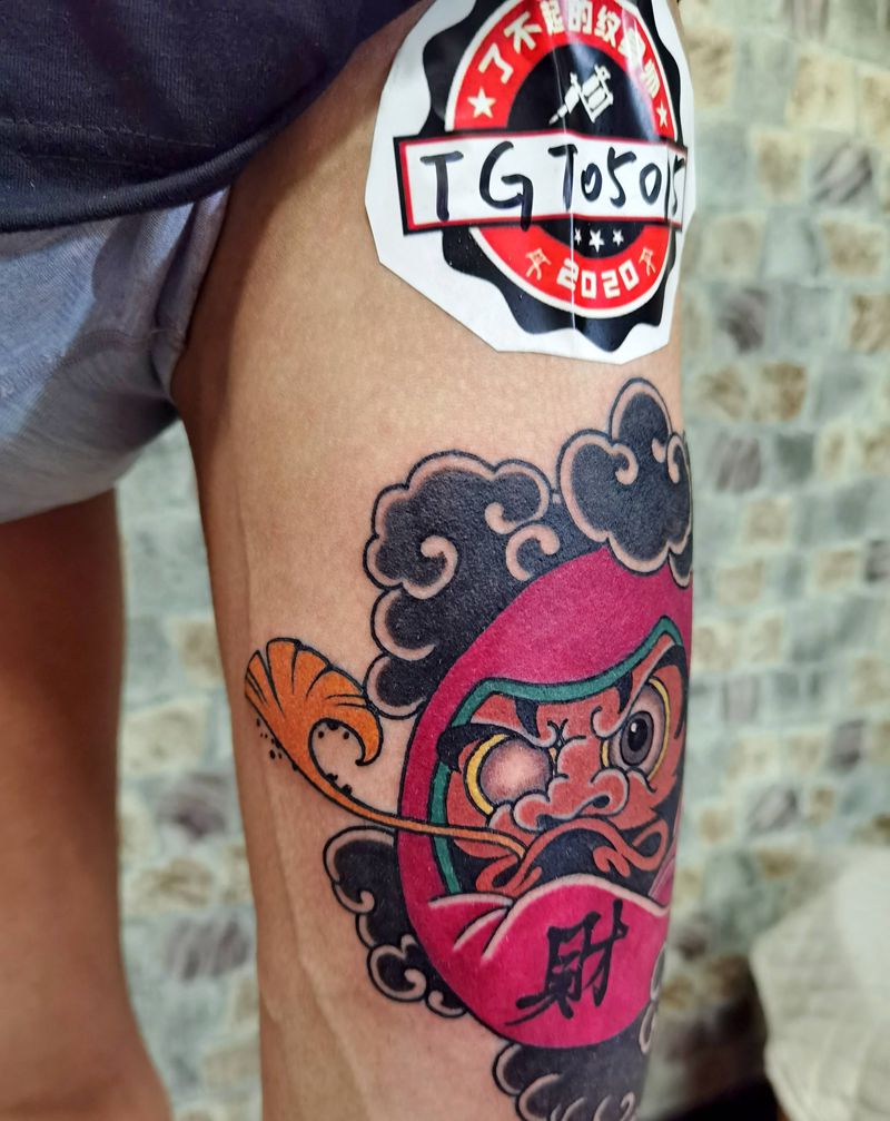 当前位置: 首页 >山东省烟台市纹身店-小军刺青纹身图案>达摩蛋纹身图片_腿部老传统达摩蛋纹身图案