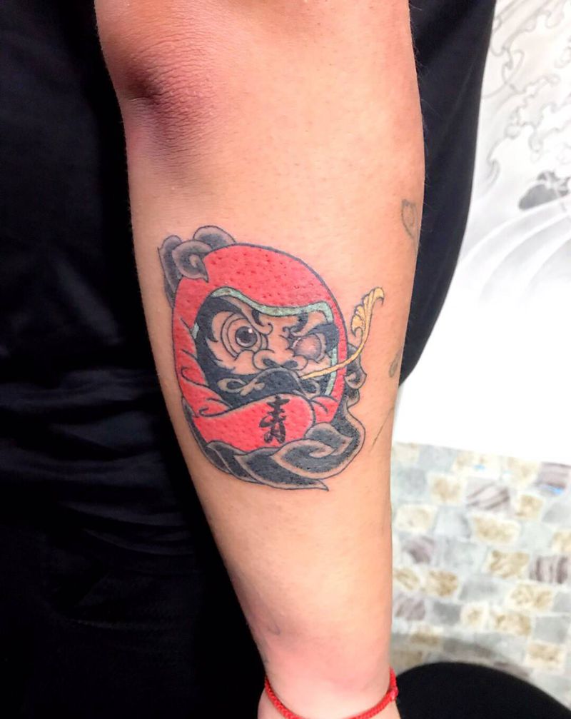 当前位置: 首页 >山东省烟台市纹身店-小军刺青纹身图案>老传统手雕之达摩纹身图片_手臂纹身图案