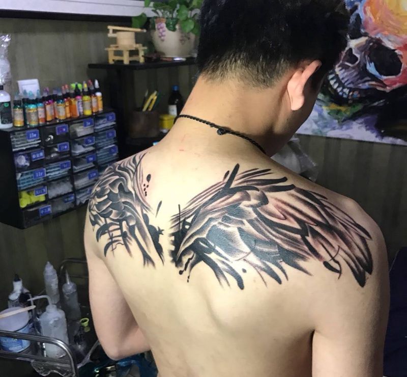 • 纹身吧推荐的披肩图腾半胛纹身图案作品展示