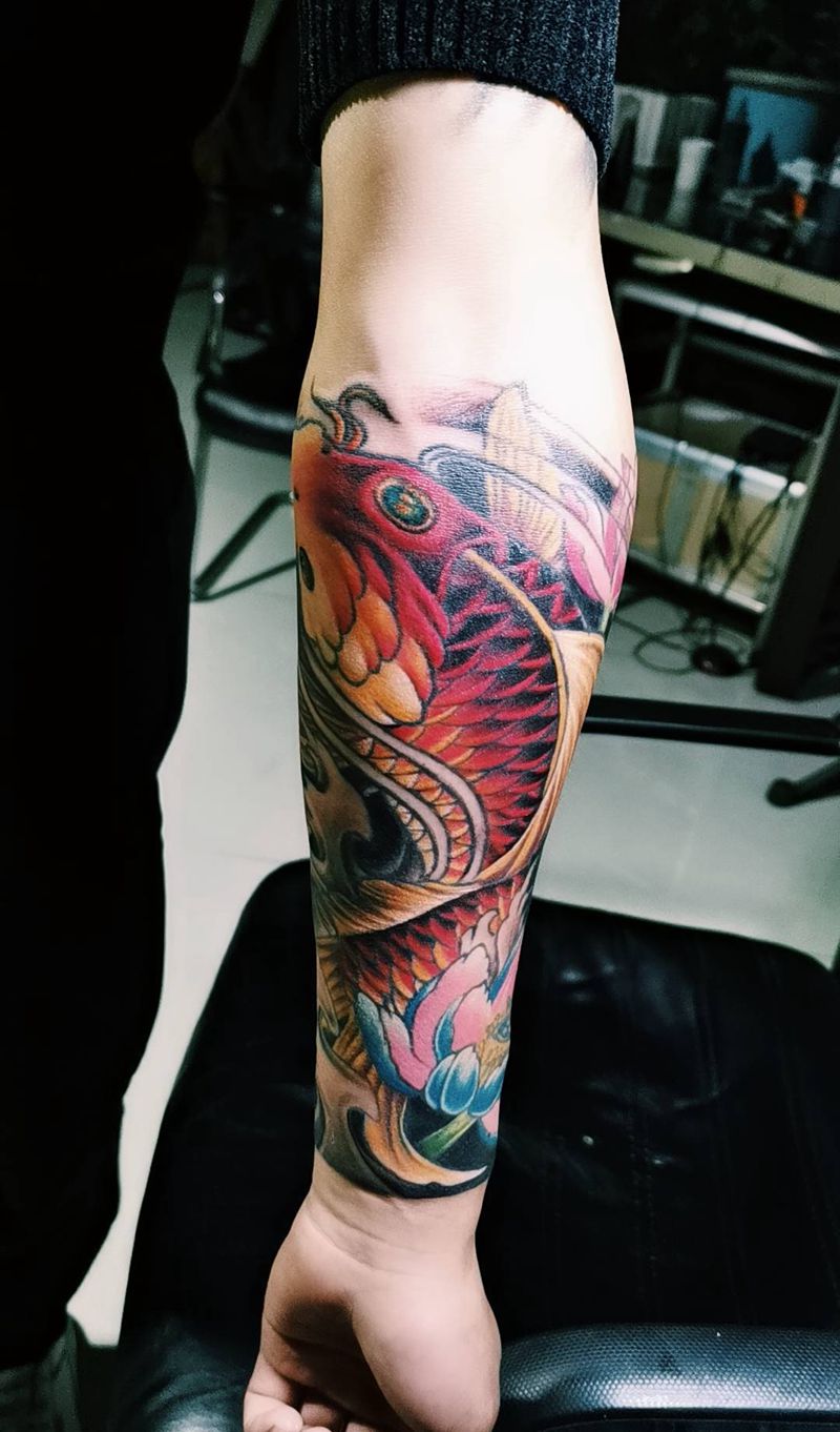 当前位置: 首页 >山东省枣庄市纹身店-滕州刺绣堂纹身纹身图案>鱼纹身图片_手臂纹身图案