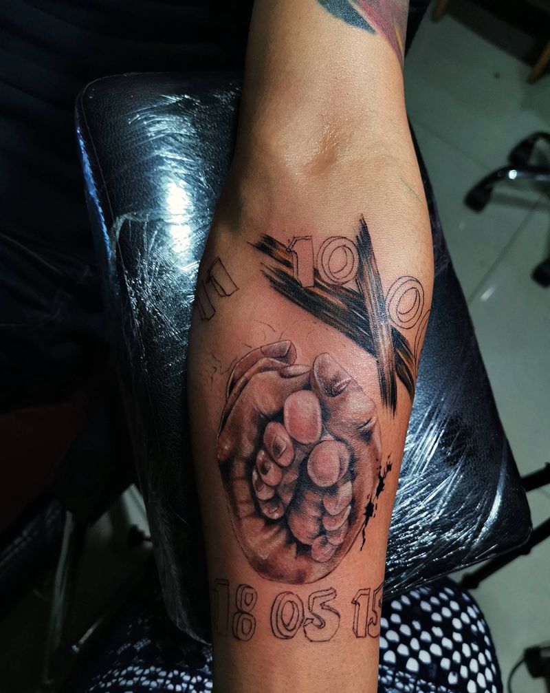 父爱如山纹身图片_手臂欧美写实纹身图案