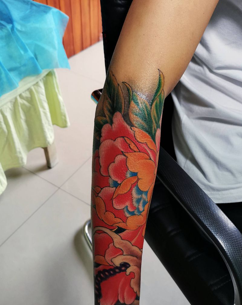 当前位置: 首页 >山东省枣庄市纹身店-滕州刺绣堂纹身纹身图案>牡丹纹身图片_手臂老传统纹身图案