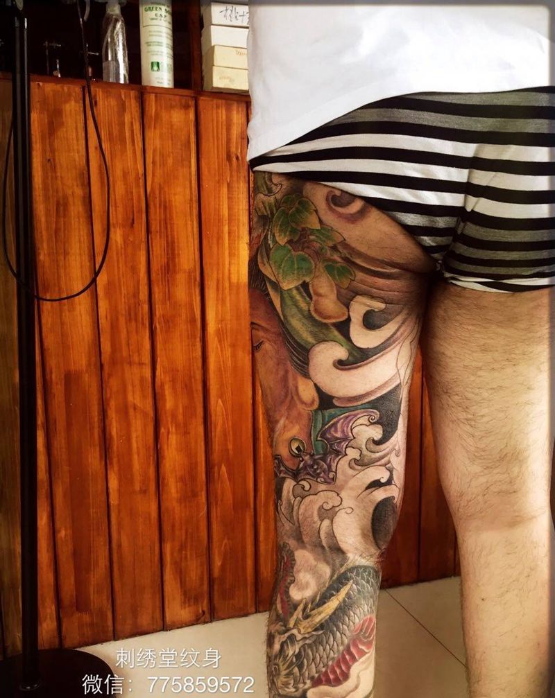 • T网红王老大花腿龙纹身图片_腿部新传统纹身图案