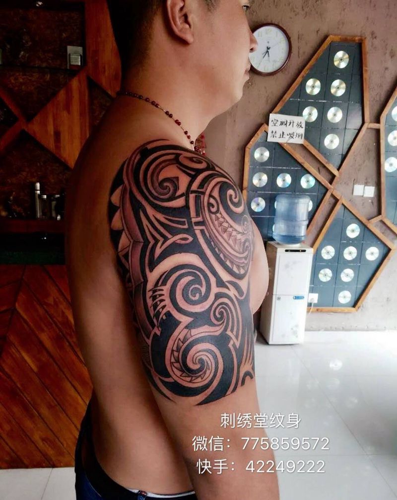 • 纹身吧推荐的披肩图腾半胛纹身图案作品展示