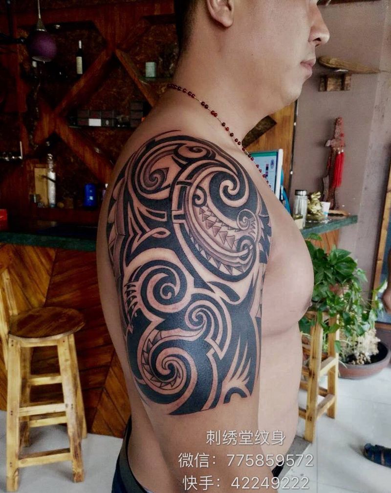 • 纹身吧推荐的披肩图腾半胛纹身图案作品展示