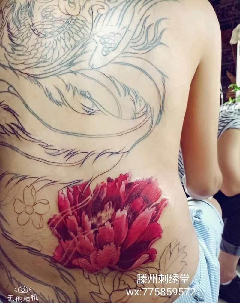 当前位置: 首页 >山东省枣庄市纹身店-滕州刺绣堂纹身纹身图案>凤凰修改,搭配牡丹纹身图片_背部纹身图案