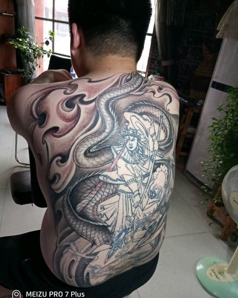 黑灰满背纹身图案