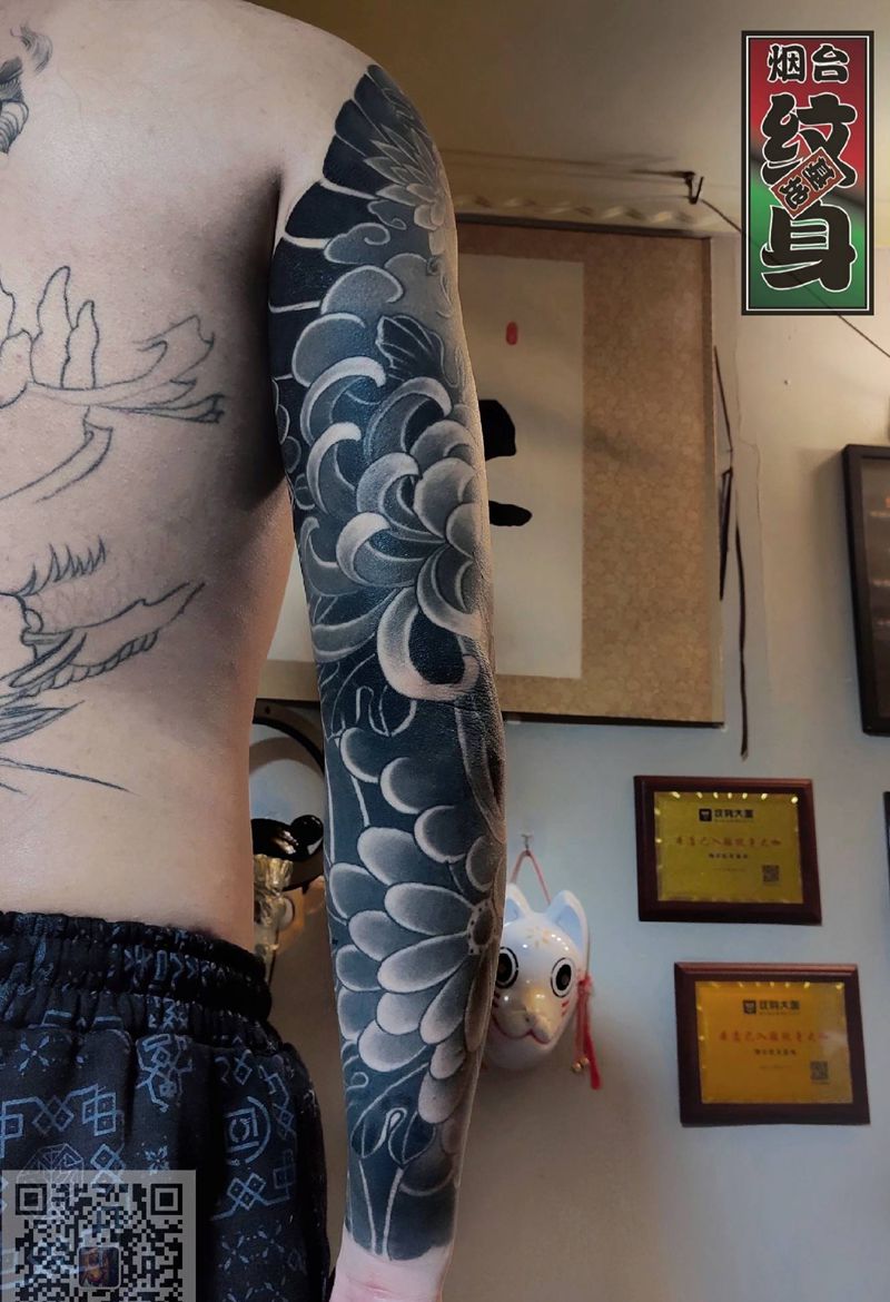 黑灰满背纹身图案