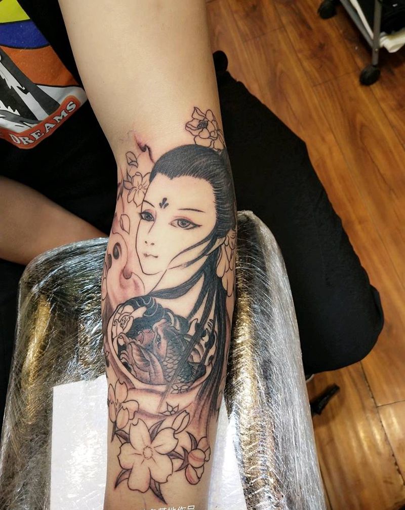 当前位置: 首页 >山东省烟台市纹身店-烟台纹身基地纹身图案>纯净版艺妓纹身图片