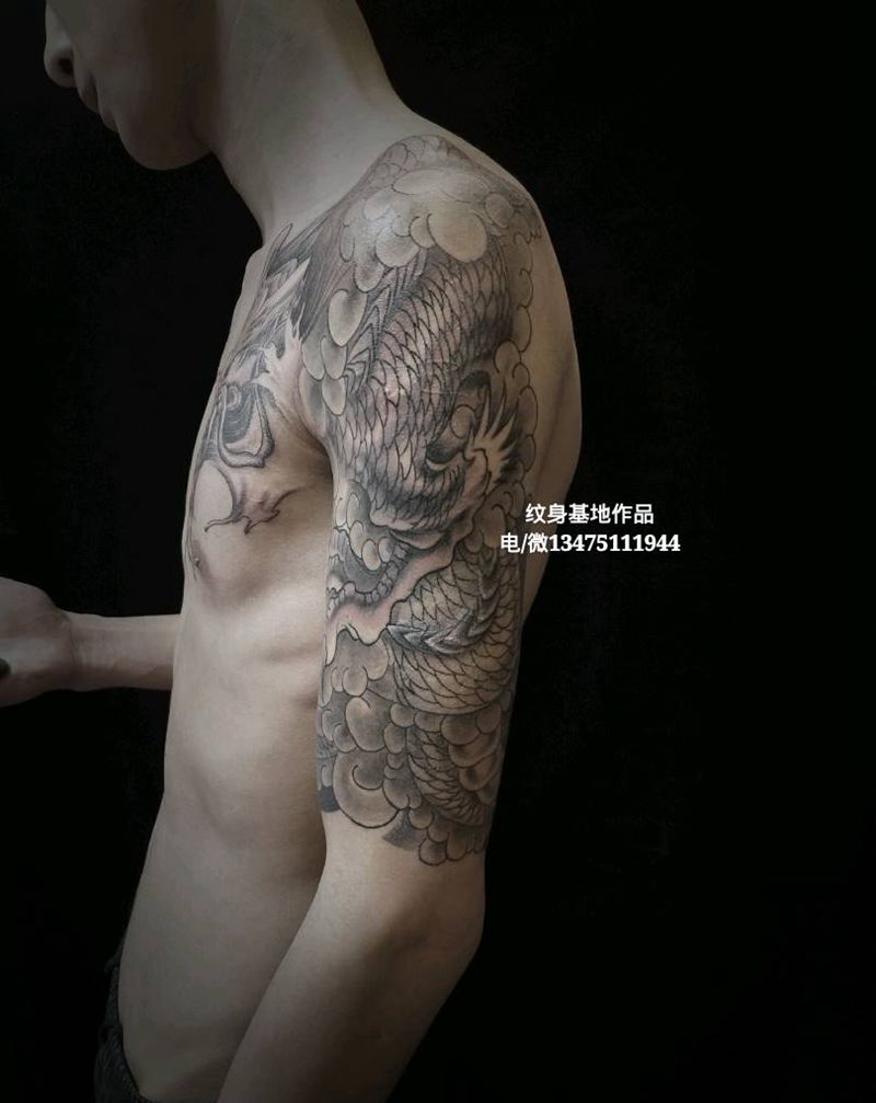 当前位置: 首页 >山东省烟台市纹身店-烟台纹身基地纹身图案>过肩龙纹身图片