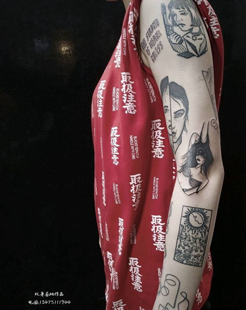 当前位置: 首页 >山东省烟台市纹身店-烟台纹身基地纹身图案>拼接花臂纹身图片